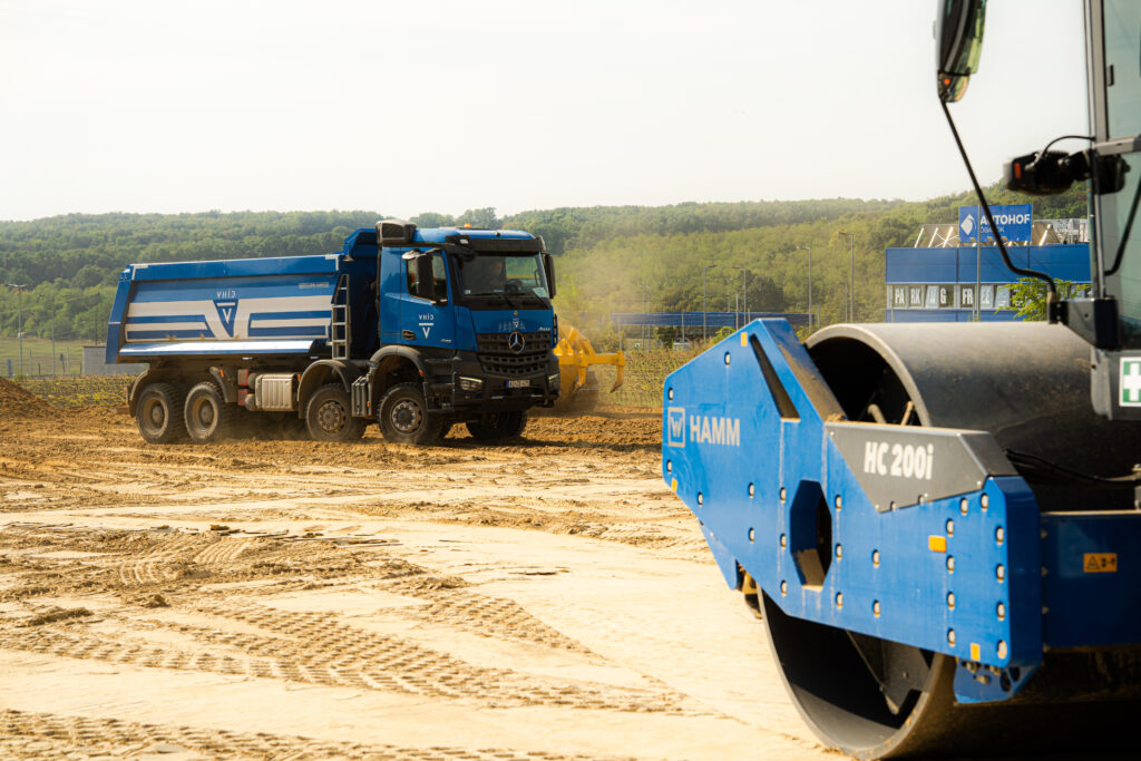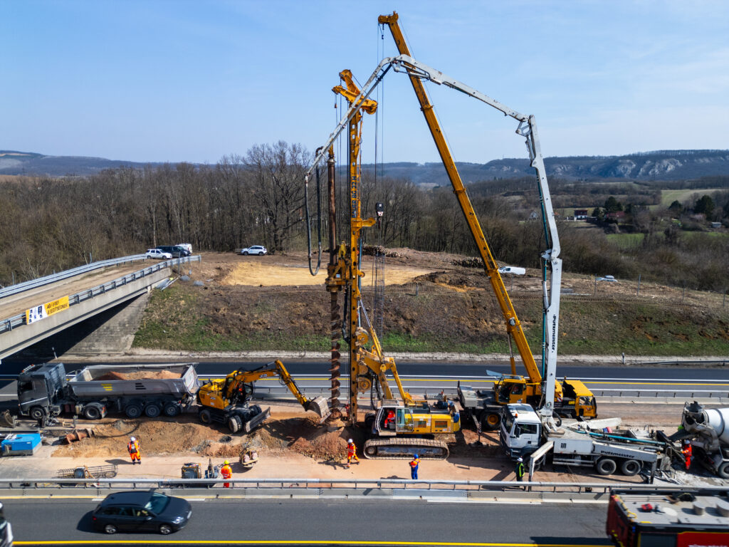 V-Híd logós gépeink, eszközeink az ország számos pontján láthatóak munka közben, ahol szakembereink irányítása alatt összetett autópálya-bővítési és vasútfejlesztési projekteket valósítanak meg.